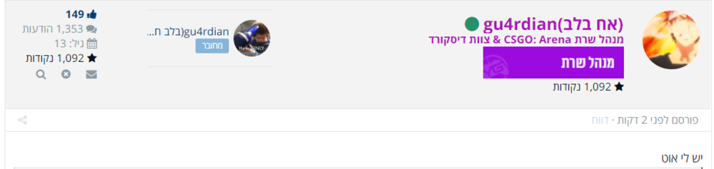 שלום, פתחתי אשכול בפורום CSGO שננעל על ידי אחד ממנהלי קהילת CSGO מהסיבה :" אין על מה לדון". אני פותח האשכול, ולטעמי יש הרבה מאוד על מה לדון, ונעילת האשכול היא תגובה מאוד ילדותית... בנוסף, אני מחכה לתגובה של אחד מהמנהלים היותר בכירים, כיוון שכמו שצוין באשכול כבר פניתי לחברי ההנהלה הרגילים לפני יותר מחודש ועד היום לא קיבלתי תשובה. וכאשר אחד מהמנהלים יגיב אני אשמח גם לענות לו. בנוסף, לא יזיקו תגובות של עוד שחקנים בנושא. כאשר פניתי אליו בפרטי הוא אמר לי לפתוח אשכול חדש ולציין בו איזה משתמשים אני רוצה שיגיבו ואיזה לא... נשמע לי כמו פתרון ילדותי. לדעתי, כל אחד שרוצה להשתתך בדיון, יכול. כל עוד הוא דומר על שיח מכבד ועונה תשובות ענייניות. הגישה הזאת של "מתלונן" אחד, נגד כל הצוות, לא נראת לי. אנחנו כולנו פה בוגרים ויכולים לשמור על שיח מכבד ומכובד.