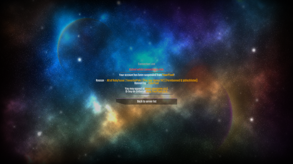 אני לא מצאתי את הפורמט של הappeal אז יצרתי אחד משלי מקווה שזה מספיק שם השחקן: Sonsted אדמין/שחקן שביצע את הפעולה: Yourpixel סוג ההרחקה: באן אייפי זמן ההרחקה: תמיד סיבת ההרחקה: (Alt of RubyTuxxe | TrevorGalPoki | (Pre-ign: ItamarTnT (Permbanned & ipblacklisted) למה אתה חושב שמגיע להרחקה שלך לרדת: בגלל שתבינו אוקי אני כבר יודע מה עשיתי שלא היה נכון אני יודע שקיבלתי מלא הזדמנויות להורדות באנים וגם מיוטים אני מבטיח לא לעשות את זה שוב עבר כבר יותר מחודש מאז הבאן ואני מבין שלא הייתי צריך לעשות את זה ואני מבטיח שאני בחיים בחיים בחיים בחיים בחיים לא יעשה משהו כמו לקלל לבוא מאלטים להציק לגנוב וכל סיבה אחרת שצריך לתת בגללה באן ואני שמעתי שיוצאת עונה חדשה של פאקשנס ואני ממש רוצה רק בעונה הזאת להיות בהתחלה שלה כי מתי שפתחתם שוב תפאקשנס הייתי עוד בבאן של ה100 ימים ואני רציני רציני רציני מבטיח שאני בחיים אבל בחיים לא יעשה משהו כזה שוב אני מבין שזה לא מקובל ושלא הייתי צריך לעשות את זה אבל אני לוקח אחריות על כל מה שעשיתי ואני מבקש שתתנו לי עוד הזדמנות כדי לשחק שוב. הוכחות: