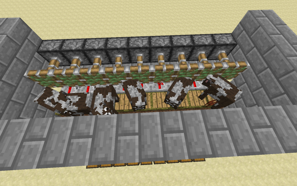 מה קורה חברים היום אני יראה לכם איך לבנות חוות פרות שלב 1- תשימו תיבות ותחברו עליהם הופרים שלב 2- תבנו את מה שאתם רואים בתמונה שלב 3- תוסיפו פיסטונים בצורה כזאת שלב 4- החלק האחורי אמור להיראות ככה ואיפה שהבלוקי דיימונד נמצאים שם אמורים להיות ספאונרים שלב 5- החלק הקדמי של החווה אמור להיראות ככה והחווה שלכם מוכנה החווה מתאימה גם לפיראטבי