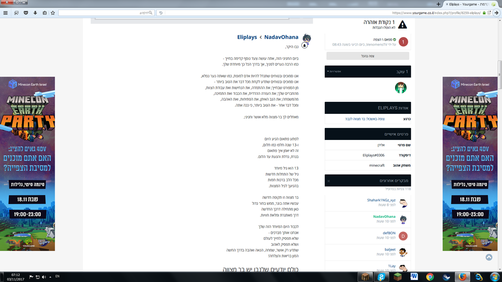 שלום קוראים לי בשרת SweetDoge שהתחלתי לשחק התחלתי בהתנהגות לא טובה עשיתי כל מיני שטויות התחצפתי קיללתי איימתי וקיבלתי המון עונשים אני יודע שזה לא בסדר כל מה שעשיתי אני מצטער על זה נכון שזה לא היה בסדר מצדי לאיים בדידוס זה לא היה בסדר מבחינתי אני גם מצטער על כל מה שקרה שאני בשרת מאז שנכנסתי שהתחצפתי והכול אני מבקש סליחה גם מחגאי שאמרתי שאתה עושה פרוטקציות ומנבו שאמרתי שאתה מנצל תגישות שלך בשביל חברים אני יודע שכל מה שקרה זה לא בסדר באמת סליחה על הכל אני באמת ממש מצטער עשיתי הרבה בעיות ואתם ויתרתם לי אני מבטיח שאני לא יעשה יותר בעיות מקווה שתבינו תודה רפאל