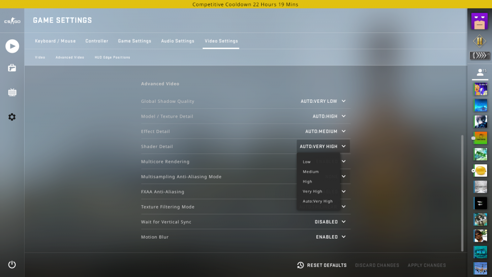 איך לקבל יותר fps דבר ראשון כנסו לסטים ליברי קליק ימני על סי אס פרופרטיס וסט לאנצ' אופצ'נס ותעתיקו את הדבר אבה לשם ---high -nod3d9ex1 -threads -- זה הולך לשפר את האף פי אס אבל לא בצורה כול כך משמעותית אכשיו עוברים לדברים היותר משמעותים רוב האנשים חושבים שאם הם ישימו הכול על low באגדרות וידיו בסי אס זה ישפר להם רת האף פי אס אבל האפך שימו הכול על auto שמכו עלי זה הולך לשפר לכם את האף פי אס תרדו טיפה באגדרות ותירו אופציה שקוראים לה מולטיסמפלינג אנטי אלייסינג שימו אותה על none דבר אחרון תורידו רזולוציה זה הדבר הכי חשוב אני ממליץ להוריד את הרזולוזיה בקצת פחות לעומת מה שהיה לכם אבל לא יותר מידי בנוסף אם אתם אוהבים שימו את הסקל על 4:3 גם כן מביא יותר fps