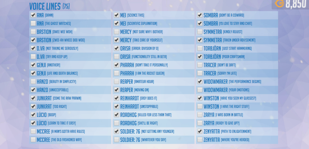 אז היום נגמר האיוונט של הכריסמס ורציתי לשאול מה לקנות לפני שהוא נגמר? כרגע יש לי מהכריסמס: Skins: Santaclad Torbjorn Andes Lucio Yeti Winston Nutcracker Zenyatta Highlight intros: Under The Mistletoe - Windowmaker אני פחות מעדיף את הסקינים הפשוטים של טרייסר או מיי ויותר רוצה לקנות נגיד את של מקרי. המלצות מיוחדות?
