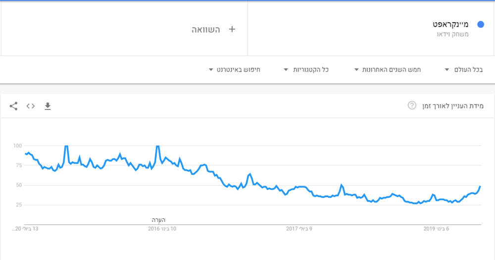 כפי שאפשר לראות כאן מספר החיפושים של מיינקראפט כיום הרבה יותר נמוך מפעם קצת פחות מחצי אם מסתכלים רק על שנה אחרונה באמת נראה שהוא חוזר אבל אם מסתכלים בטווח של 5 או 10 שנים רואים שהוא מאוד רחוק מהשיא.