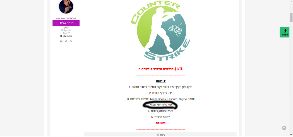 שם מגיש התלונה: KoSt4 SteamID: STEAM_0:1:90360678 שחקן\אדמין עליו אתה מתלונן: Defbon קישור לסטים של השחקן עליו אתה מתלונן:http://steamcommunity.com/id/defBON תאריך המקרה: 19.5.17 תיאור המקרה: אני נכנסתי לשרת הגייל נבחר להיות הסיטי בחרתי את Mafrum הוא מת הייתי במשך 10 עד 20 שניות בנישקיה הוא אמר לי לצאת אם אני לא יצא אני בסיטי באן באתי לצאת הוא הרג אותי הייתי עם חבר בסטים ובטעות התבלבלתי וכתבתי בצאט שתוק ולדעתי הוא אם הוא חושב שאני צריך לצאת מהנישקיה הוא צריך לתת לי סליי ולא Vote ct. הוכחות תומכות: יש לי חבר שיוכיח את המקרה. הערות: לדעתי צריך לתת עונש על המעשה של Defbon.
