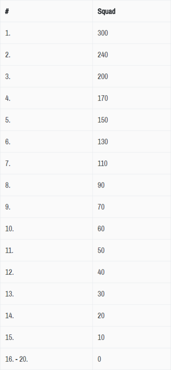 שלום לכולם, להלן חוקי הטורנירים של שרת ה-PUBG 1. כל משתתף מאשר בזמן ההרשמה שהוא וחברי קבוצתו קראו את כל החוקים ומאשרים אותם. 2. כל משתתף חייב לכבד את שאר המשתתפים כמו שהוא רוצה שיכבדו אותו. שבירת חוק זה יכולה לגרום להשעיה מהתחרות. 3. כל שימוש בצ'יטים\סקריפטים יגרום להרחקה תמידית מכל פעילות הקשורה לשרת הפאבג'י. 4. אין לנצל באגים. כל ניצול באג יגרום להרחקה, זמן ההרחקה נתון להחלטת ההנהלה. 5. כל משתתף צריך לספק את שמו ב-PUBG וקישור לסטים שלו בזמן ההרשמה. 6. על כל משתתף להגיע רבע שעה לפני תחילת התחרות לשרת הדיסקורד של הקהילה - https://discord.gg/jma9gW8 7. סולו - שחקן אחד. דואו - 2 שחקנים. סקוואד - 4 שחקנים. 8. לא ניתן להחליף קבוצה אחרי שנרשמתם. 9. במידה ושחקן שנרשם לא יכול להגיע (Squads or Dous), ניתן להודיע כשעה לפני התחרות על מחליף (שם בפאבג'י וקישור לפרופיל סטים) (לא תקף בליגה) 10. המוד אשר ישוחק (Game Settings) יוכרז יחד עם הכרזת התחרות, כנ"ל לגבי המפה המשוחקת. 11. ניתן להירשם ללא קבוצה, ובמידה ויהיו מספיק נרשמים ללא קבוצה נצוות אותם לקבוצה ביחד. (לא תקף בליגה) 12. את הסיסמה ללובי המשחק יקבל מנהיג הקבוצה כרבע שעה לפני המשחק, את הסיסמה אין לפרסם - המפרסם ייענש. מבנה לתחרויות: •︎ SOLO מקסימום 80 איש •︎ DUO מקסימום 40 זוגות •︎ SQUAD מקסימום 20 קבוצות •︎ כל קבוצה שנרשמת לטורניר מקבלת מספר "חדר" גם בDiscord וגם בPUBG •︎ אין להיכנס לחדר שהוא לא שלך במהלך הטורניר/בהקדמה. •︎ ניתן יהיה לצוות שחקנים ביחד לאותו קבוצה בSquads וDuo, הם יהיו בחדרים יותר גבוהים בשביל להבדילם מהאחרים. •︎ מספר החדר של הקבוצה הוא לפי זמן הרשמתה לטורניר. לדוגמה: באדום: קבוצה שנרשמה ראשונה לטורניר ביחד בתור קבוצה קיבלה את חדר מספר 1 בלובי של המשחק וגם בDiscord. בירוק: שחקנים שנרשמו לבד וצוותו ביחד לאותה קבוצה. טבלת ניקוד (לטורניר של יותר ממשחק אחד) •︎ כל הריגה תזכה אתכם ב10 נקודות