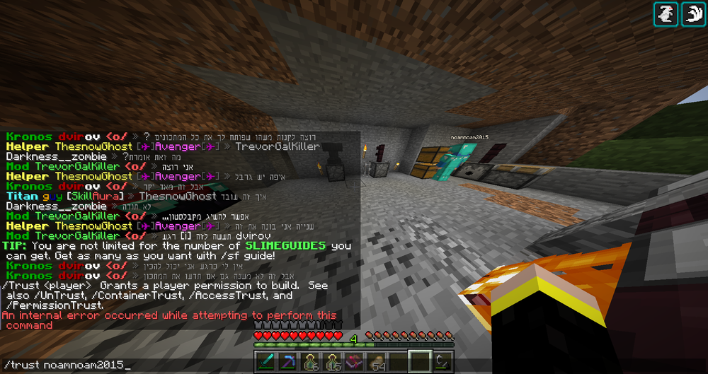 שם מגיש ההצעה:נועם תאריך הגשת ההצעה: 24.1 הצעה לשרת: (שם השרת) SlimeFun הסבר על השרת : כל אחד מתחלק לקבוצות ומתחילים לשרוד, אתה יכול לעשות Claim לשטח שלך וככה לא יגעו בו. הדבר המיוחד זה שיש לך ספר מיוחד שאתה יכול לקנות כל מיני חפצים מיוחדים ומגניבים בעזרת אקספי. אתה יכול לקבל נעליים שאין מהם Fall Damge, חרב עם הרבה סיכויים לקבל ראש מווידר סקלטון עוד הרבה דברים. יש סוג של מכונות כאלה שבונים מבלוקים רגילים ועוד, בעבר זה הצליח מאוד ואפילו @Kappit היה בצוות השרת שם.
