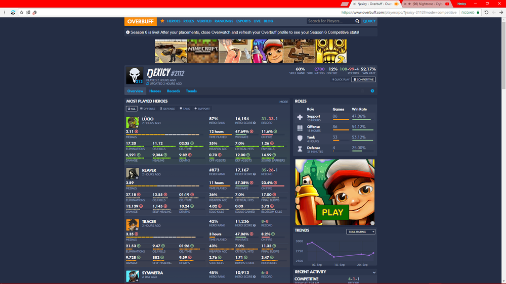 מה קורה חברים? חזרתי אחרי תקופה של שנה וחצי שלא שיחקתי ונגעתי במשחק אפשר לראות ב20 משחקים האחרונים שלי שכמה משחקים שיש שם הם מ2016. הראנק הכי גבוה שלי היה גולד 3 שהשקעתי עליו במשך כל סיזון 6 (התחלתי באמצע של 5) שיחקתי בכל מיני תחרויות של הקהילות שהיו אז (עכשיו אני כבר לא בקטע) בקיצור רוצה למצוא מישהו שברמה כמוני ולא ברונזים עכשיו אני סילבר 4 והרגע קיבלתי את הראנק משחק ADC/SUPPORT/MID/TOP - הייתי גם גנגל פצצה אבל כרגע אני עוד לא ניסיתי אותו (חוזר לאט לאט למשחק) סקייפ/דיסקורד.... מה שתרצו השם במשחק - 4Rage שרת EU NORDIC EAST בן 17 וחצי תוכלו לשלוח לי בקשת חברות בדיסקורד - Daniil #7062 או פה כתגובה או כהודעה פרטית *אני רואה הכל*